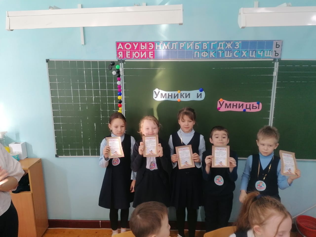 Ученики 2 и 4 классов приняли участие в интеллектуальной игре " Умники и Умницы", которую провели Алябушева С.С и Камильянова А.Х..Ребята соревновались в разных предметных областях, решали логические задачи отгадывали ребусы, составляли из букв слова, отвечали на вопросы, угадывали песни.