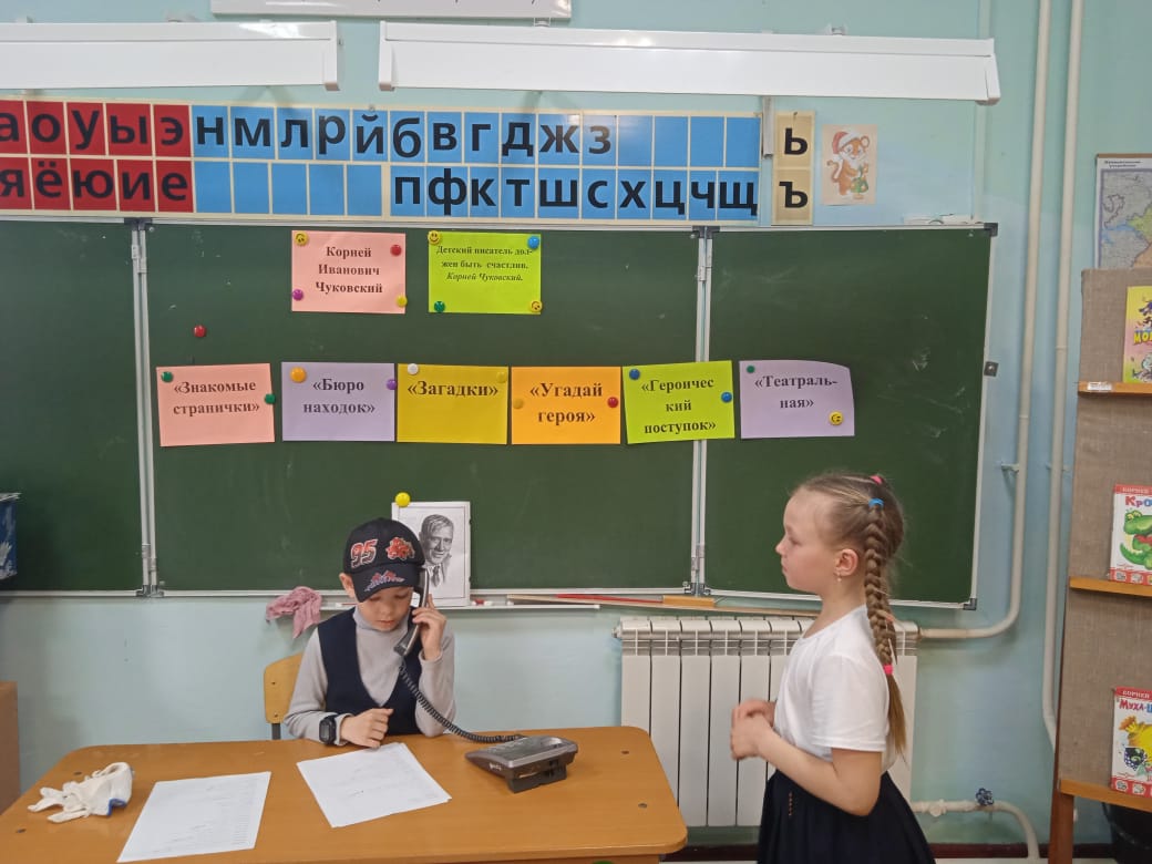 Учащиеся 2а класса совершили увлекательное путешествие в мир сказок К. И. Чуковского, приуроченного Неделе детской книги и юбилею писателя. Под руководством библиотекаря Максимкиной С. Я. И классного руководителя Соболевой Л. Н. дети отгадывали загадки по произведениям Чуковского, узнавали героев. В конце мероприятия дети подготовили инценирование сказки"Телефон ".Праздник получился интересным и познавательным